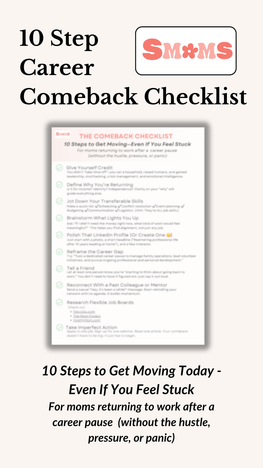 Provide your email below to receive the Career Comeback Checklist and other occassional updates. Unsubscribe at any time.